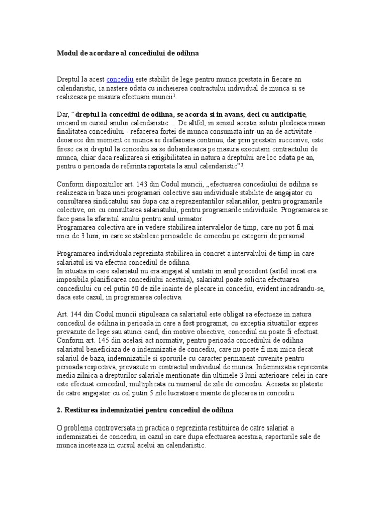 Fara a afecta in vreun fel durata minima a concediului de odihna, salariatii pot beneficia si de alte zile libere platite. Noiembrie 28, 2018noiembrie 28, 2018 interviujob. I) la libera asociere în sindicate, inclusiv la constituirea de organizaţii sindicale şi aderarea la acestea. Codul muncii actualizat 2020 ↳ titlul iii: Salut @mkissj.si bine ai venit pe forum !
