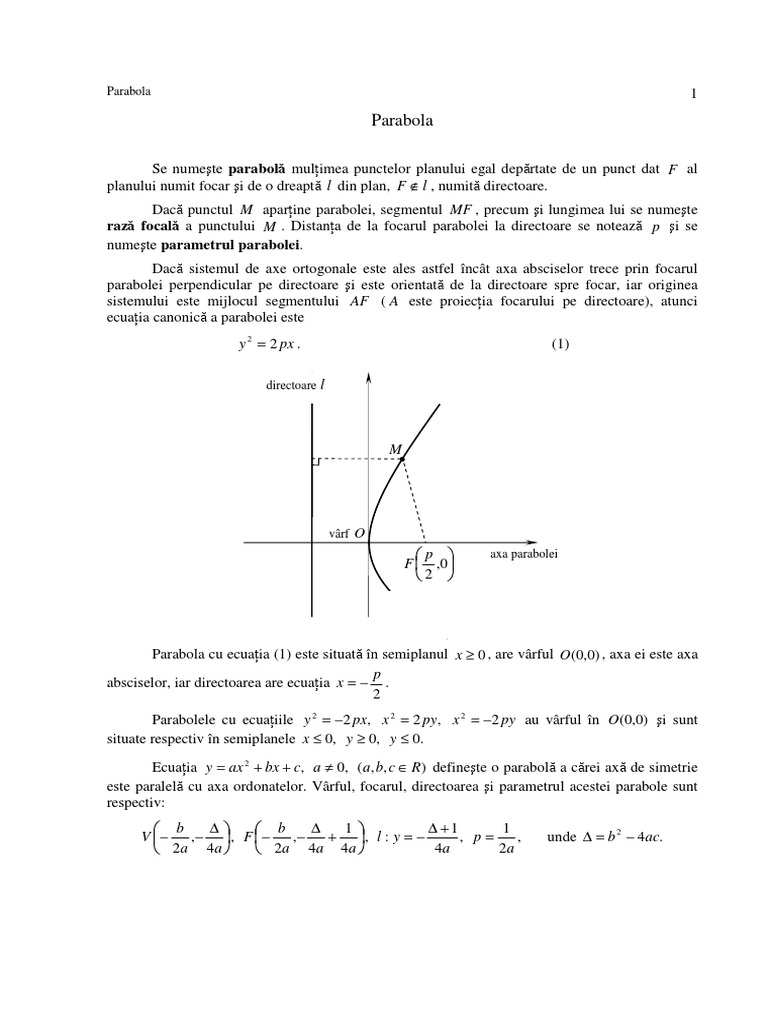Tout diamètre est un axe de symétrie.(il admet une infinité d'axes de symétrie , ce sont tous les supports de diamètre). Dacă sistemul de axe ortogonale este ales astfel încât axa absciselor trece prin focarul parabolei perpendicular pe directoare şi este orientată de la directoare spre focar, iar ecuańia y = ax2 + bx + c, a ≠ 0, (a, b, c ∈ r) defineşte o parabolă a cărei axă de simetrie este paralelă cu axa ordonatelor. De coordonate ox si oy.