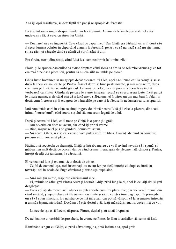 vizitati articolul complet aici : https://www.t-studio.ro/rezumat-moara-cu-noroc/ Asftel sunt urmărite în mod gradat etapele dezumanizării personajului principal. Aparitia lui lica la moara este momentul care declanseaza neliniste in viata lui ghita. Nu in ultimul rand personajul principal este construit prin mijloace de caracterizare consacrata de proza realista.