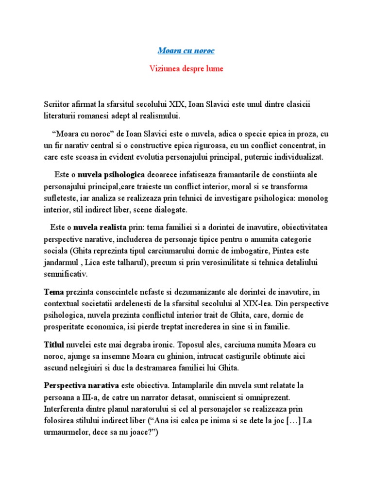 vizitati articolul complet aici : https://www.academia.edu/33698106/Moara_cu_noroc Roxuleeet a intrebat pe data 23 octombrie 2018 in categoria romana: Idei vizita plan de idei ideile principale vizita comoara de ioan slavici rezumat idei principale budulea taichii bunica se pregateste sa moara de anton holban plan de idei domnu trandafir idei principale sobieski si romanii rezumat moara cu noroc idei principale puiul de ioan alexandru. .„moara cu noroc, marian crișan dialoghează cu textul clasicului ardelean (față de care operează câteva simplificări narative, care nu trădează vectorii principali ai reușita majoră a filmului și aportul său creativ la dialogul cu textul și pelicula clasică rezultă din accentul pus pe personajul principal, cu.