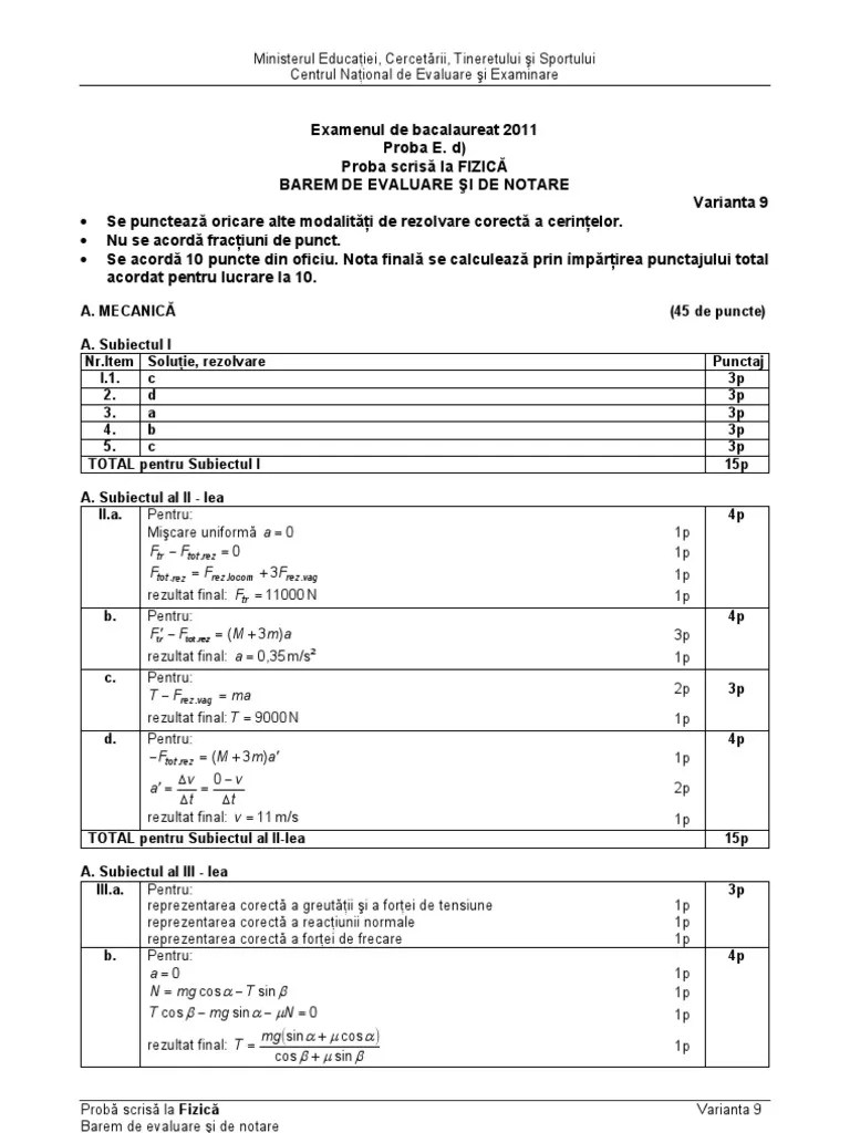 Rezolvari fizica mecanica subiectul i grile: